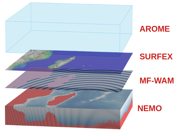 Le projet AVOCAT vise à créer une nouvelle configuration couplée Océan-Vague-Atmosphère (OVA) basée sur les modèles opérationnels dans l’environnement OLIVE, pouvant fonctionner en mode recherche et opérationnel utilisant les ressources numériques des supercalculateurs de Météo-France à Toulouse.